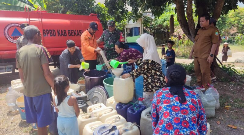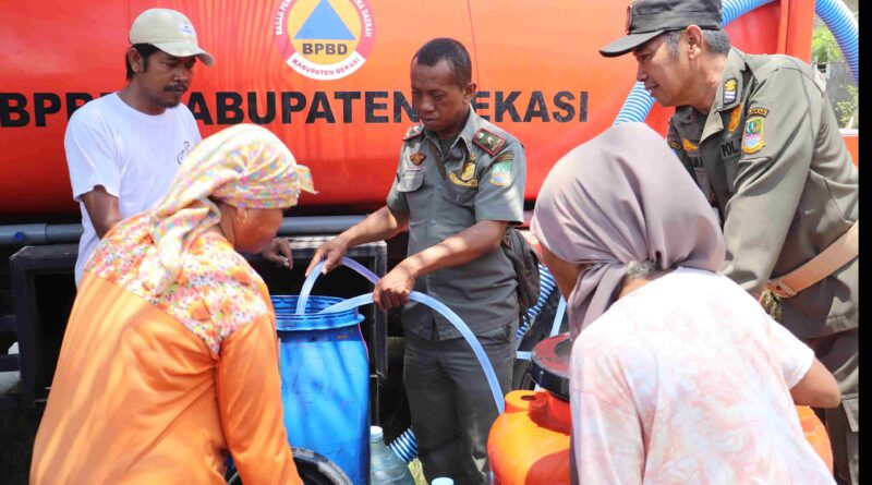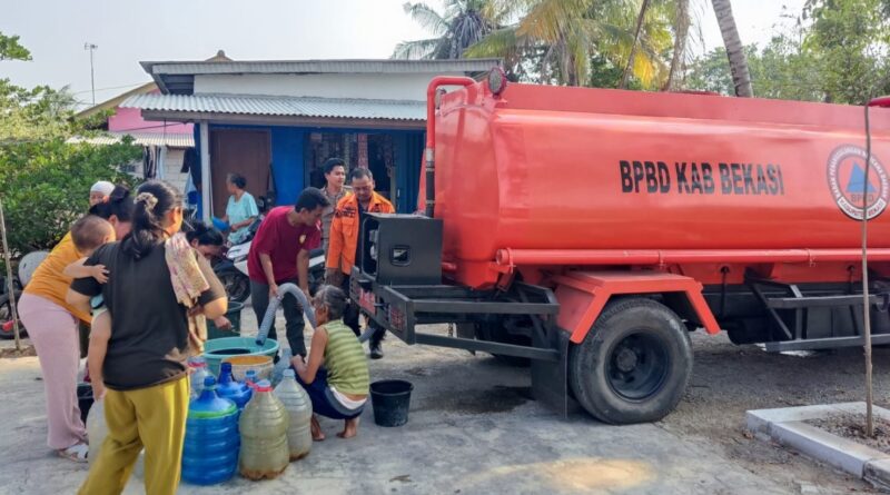 INDEKSBEKASI.COM, MUARAGEMBONG – Pemkab Bekasi melalui Badan Penanggulangan Bencana Daerah (BPBD) bergerak cepat mendistribusikan air bersih di wilayah Kp. Bulak